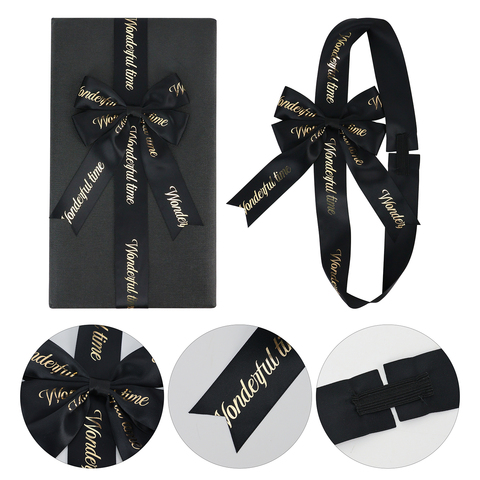 באיכות גבוהה מותאם אישית מודפס תיבת קישוט מראש סאטן אלסטי שחור סרט קשת עם לוגו עבור תיבת מתנה