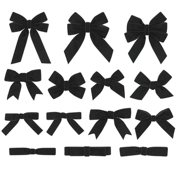 اكسسوار الشعر الاسود المصنوع من البوليستر، قابل للتخصيص من مصنع ميدي، ربطة الشعر المزودة بشريط مخملي للزينة، شريط ربط الشعر المزود بشريط